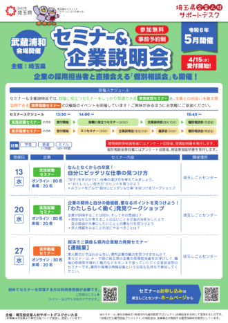 当セミナーは、テーマ別に埼玉県の企業の採用担当者をお呼びして、