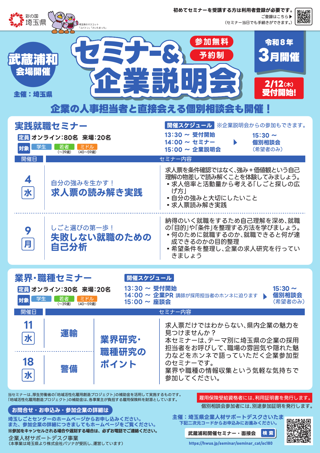 就職支援セミナーと企業説明会を同時に開催します。